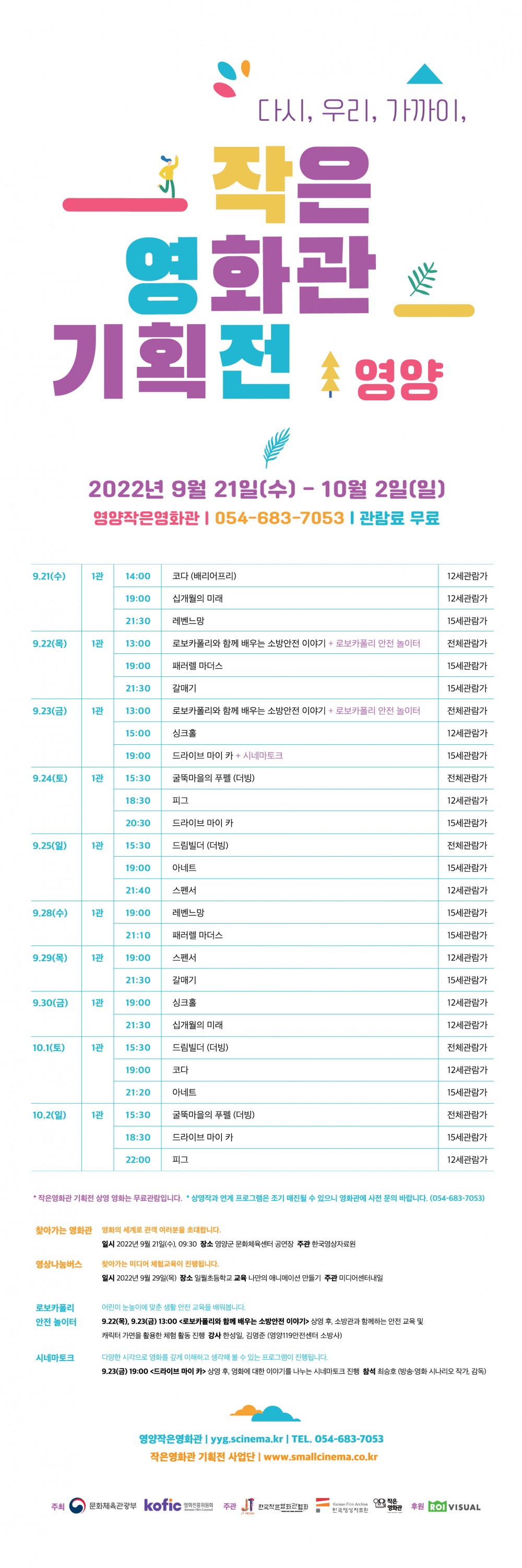 영양작은영화관 기획전 안내 페이지 정보 작성자 영양축제관광재단 댓글 댓글 0건 조회Hit 5,392회 작성일Date 22-09-08 14:28 본문 목록 이전글코로나19 극복 로맨틱 멜로디 크리스마스 콘서트(300명 한정 선착순 입장) 22.12.13 다음글2022년 영양별빛반딧불이축제 개최 22.08.12 댓글 0 댓글목록 등록된 댓글이 없습니다.